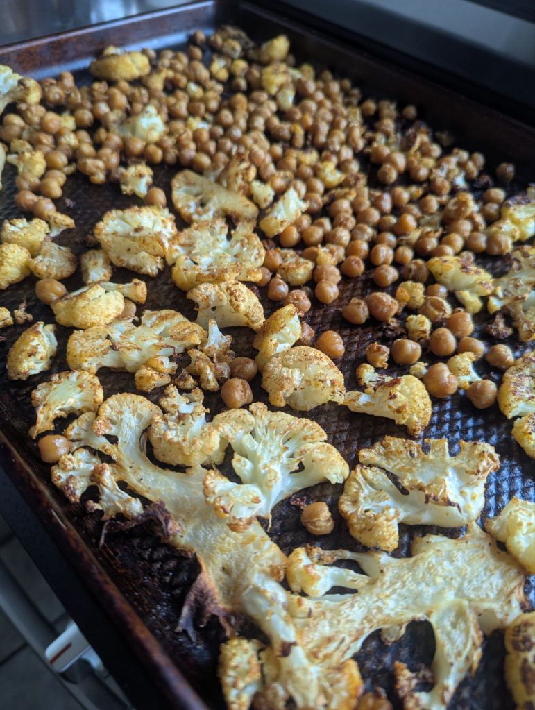 Then I roasted the cauliflower and chickpeas. After that, I took a three-mile walk with a friend. In between I spent a lot of time outside with Rocco and got some small tasks done. I just kept pretending that I didn’t have a job and that this was my everyday. A little disassociation never hurt anybody.