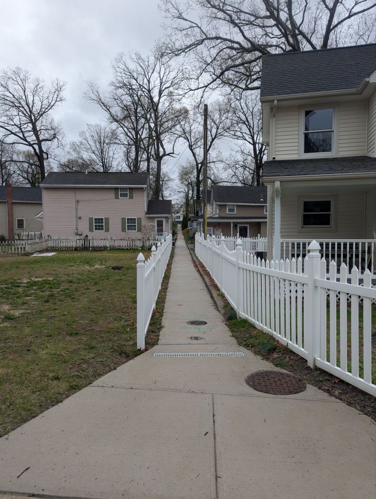 I didn’t quite know what to do with this now free day. After some errands, a walk for the dog, and family visits, Tom, F. and I ended up taking a ride down to Pitman, NJ, walking around in the light rain. We all just wanted to do something different. We sampled some treats I had been wanting to try, like marshmallows from The Artisan Marshmallow and cream puffs from Chloe’s Cream Puffs. We visited the Irish goods shop and some other quirky gifty places. And we walked into Pitman Grove, an adorable constellation of old, tiny homes laid out in a spoke pattern, with a meetinghouse at the center. Sidewalks only, no streets.
