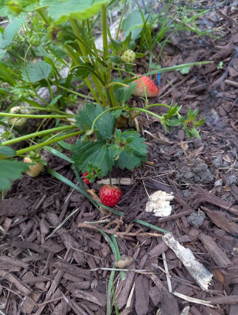 The garden has given me four strawberries thus far, tasty Albion ever-bearing ones, nice sized.