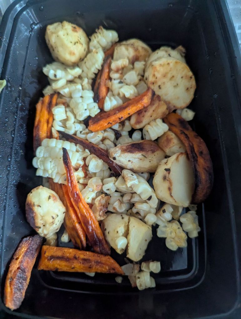 Tuesday: Prepared pulled pork from Sprouts, corn on the cob, and cheddar biscuits from a mix, plus leftover rotisserie chicken from the freezer for the non-pork eaters.