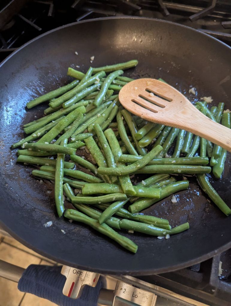 Saturday: mashed potatoes and green beans sauteed with garlic (just me and N)