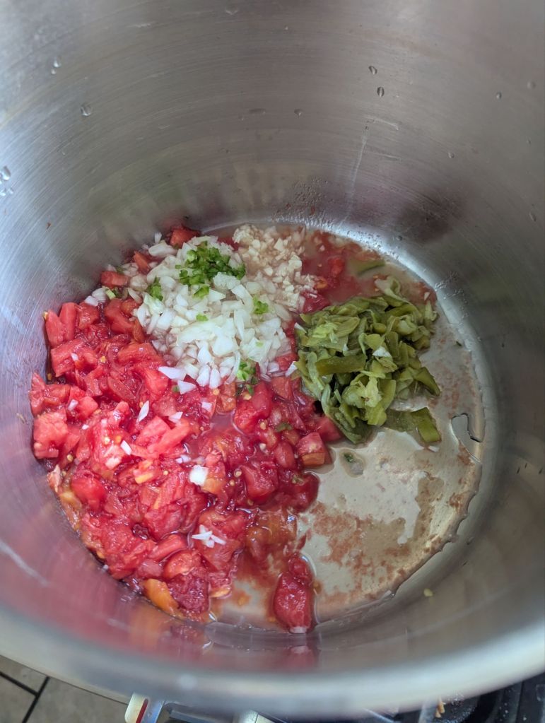 It was fun to make something different for a change. I bought the peppers, cilantro and other ingredients at Sprouts on Friday. night. Obviously I had plenty of tomatoes. I used one of my homegrown onions, too.
