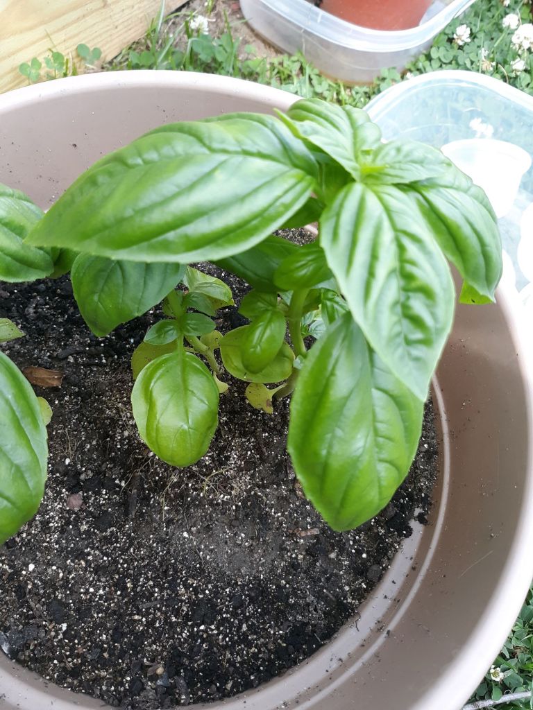Basil really prefers warm weather, so there’s not much point in transplanting it outside until after Mother’s Day here in South Jersey. Basil needs full sun.