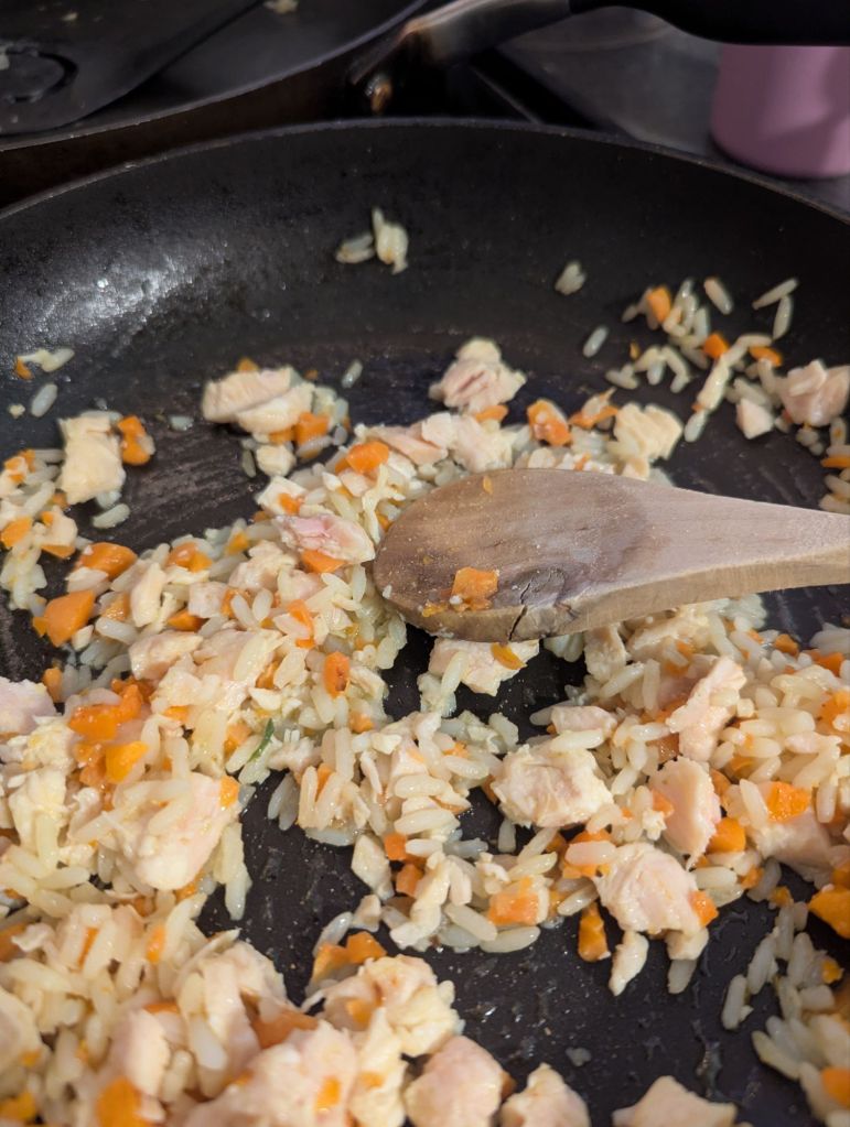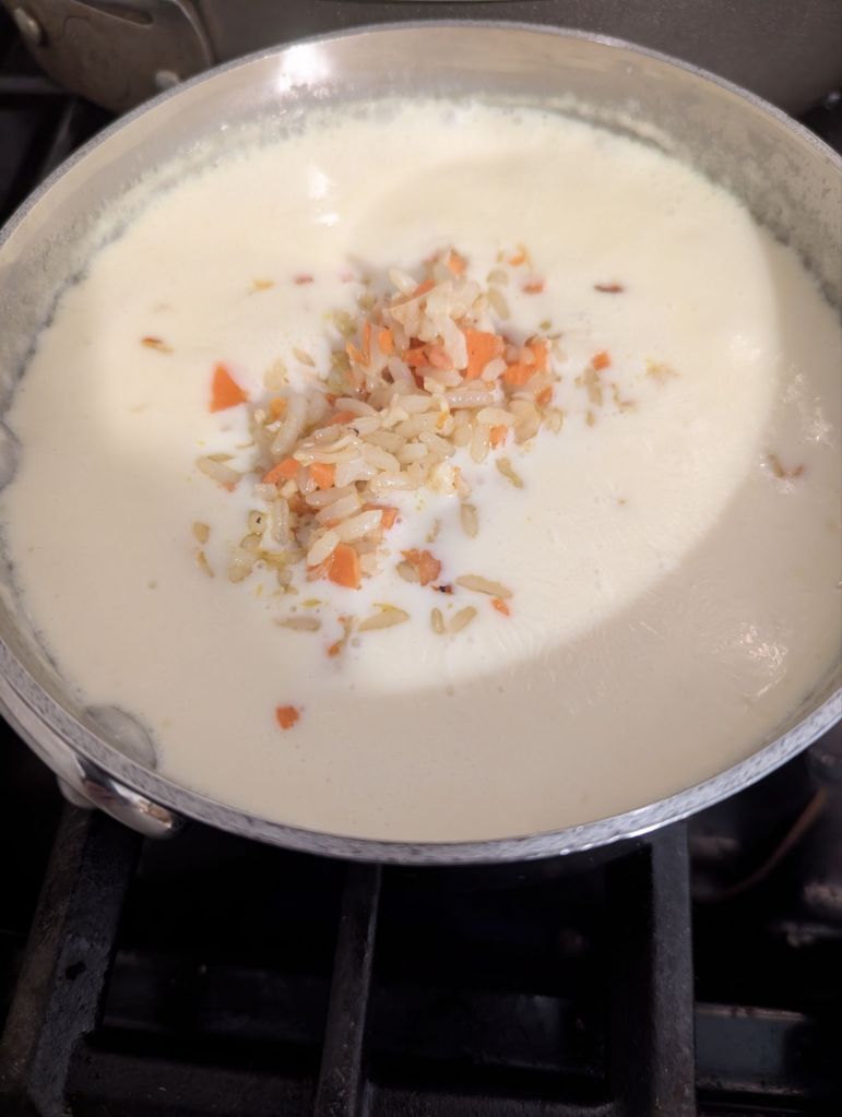 Friday: Feeling quite sick and craving soup, I took a can of cream of chicken soup and added sauteed carrots, leftover rice from Jersey Kebab, some spices, and canned chicken from my mom. It was perfect!
