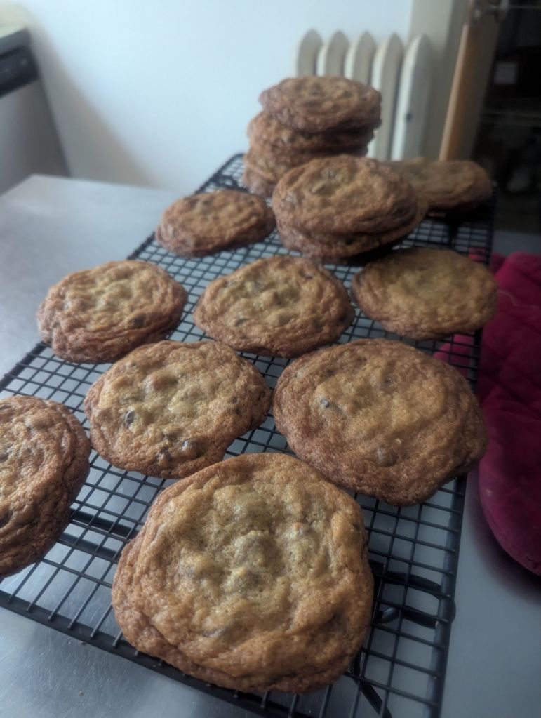 Today was a nearly perfect snow day. All five of us shared the shoveling. The kids learned early on that they won’t have school tomorrow. I busied myself baking chocolate chip cookies and making shepherd’s pie for dinner. I’ve also become a leetle bit addicted to playing games (solitaire) on Fetch to earn points, over the past few days.