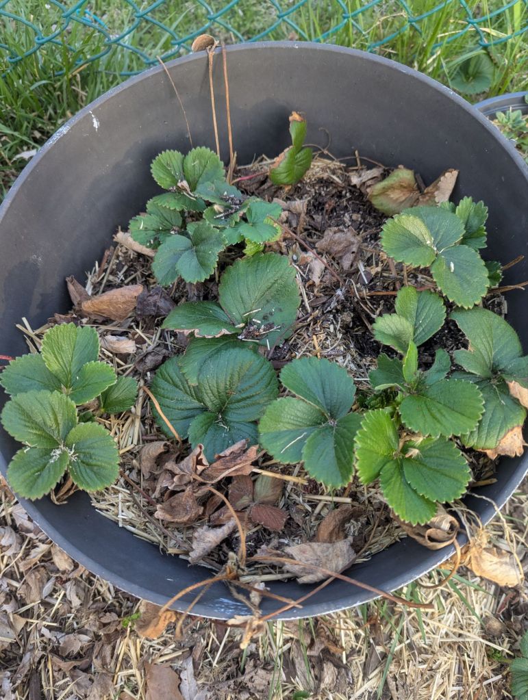 Strawberries — today I saw a flower or two