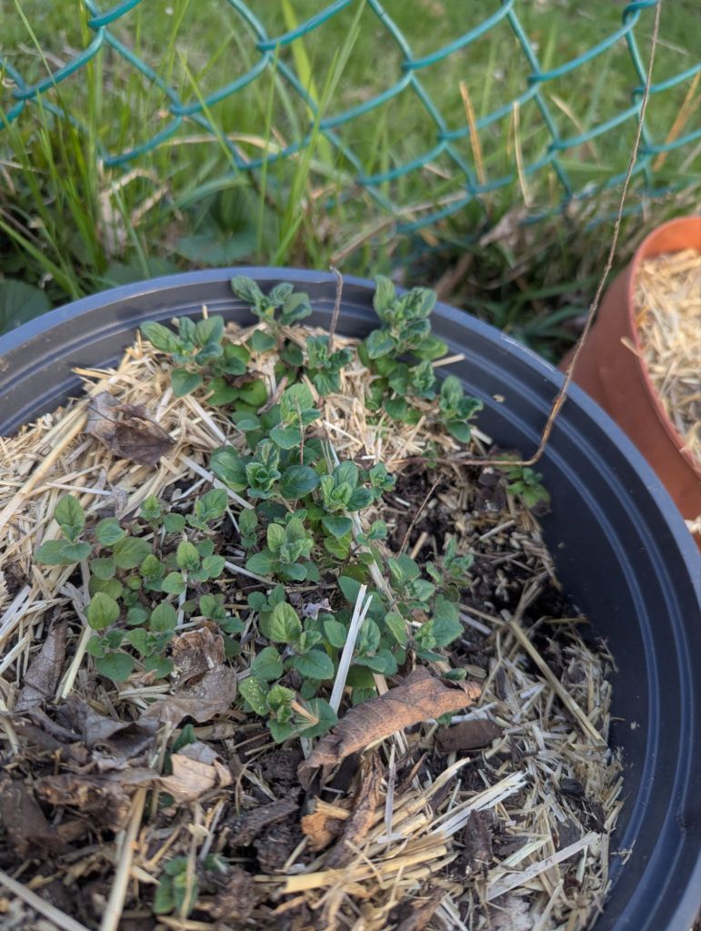 So far it seems like the sage, strawberries, hostas and oregano survived the harsh winter. I also see new love-in-a-mist coming up as well as what I think is cilantro (maybe parsley). I will need to plant marjoram, thyme and rosemary. I have yet to see any new snapdragons, and I’m not sure if the mum out front has new growth.